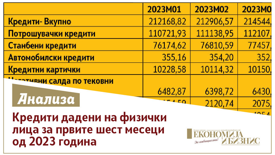 Меѓу народот кружат најразлични, пред се неосновани, муабети дека кредитирањето е забавено или дека банките веќе не одобруваат кредити. Ова во голема мера е во корелација со тоа што кредитите се со повисоки каматни стапки, па можно е да се создава нереална ситуација која за крајна цел има да се креира слика за евентуална недостапнос на кредитите што ќе доведе до помала побарувачка, а во крајна мера намалување на каматите. Но, колку и да се несериозни ваквите ставови, а верувам дека стигнале до обичниот корисник на кредит, сепак реалноста е сосема поинаква. За да ја докажеме оваа теза, ќе направиме анализа на случувањата во обемот на кредитни пласмани за период од првите 6 месеци од 2023 година, а како база на податоци ќе го користиме статистичкиот портал на НБРМ.
