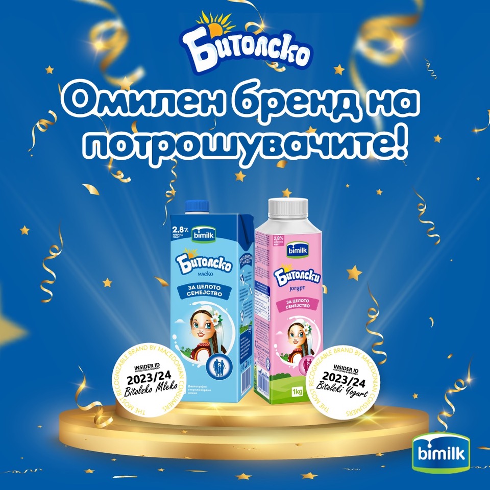 Битолски јогурт и Битолско млеко веќе четврта година со ред ја уживаат довербата на македонските потрошувачи и се најпознатите брендови за 2023 година во соодветните категории, според истражувањето спроведено од агенцијата Инсајдер ИД. Двата бренда на Бимилк, застапени во ова истражување се истакнуваат со најголема препознатливост кај потрошувачите, во споредба со сите брендови од категориите млеко и јогурт, присутни на македонскиот пазар од домашно и странско производство.