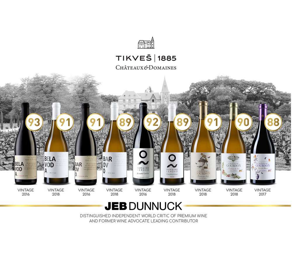 Дури девет вина од бренд платформата на „Тиквеш“ – „Tikveš Châteaux & Domaines“ добија високи оценки од познатиот независен вински критичар Џеб Данак (Jeb Dunnuck), кој произлегува од тимот на „Wine Advocate“ на прочуениот вински експерт Роберт Паркер.
