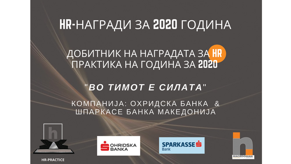 „Во тимот е силата“ на Охридска банка и на Шпаркасе банка прогласен за „Најдобра ЧР практика на годината“ за 2020 година