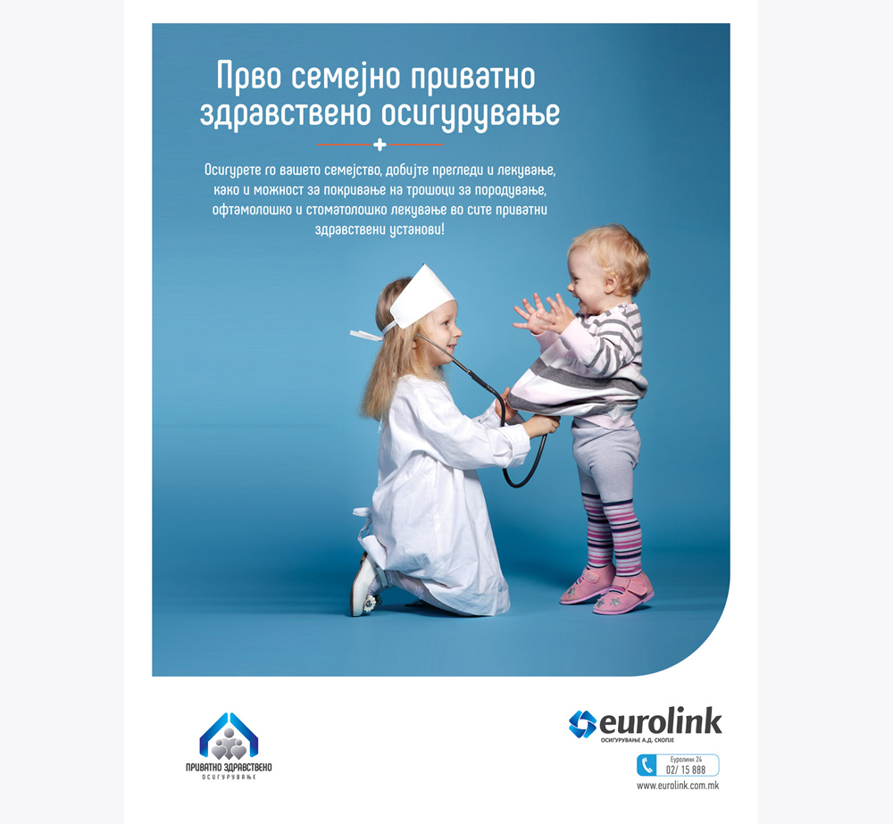 Еуролинк како лидер во приватното здравствено осигурување, на семејствата во Македонија кои сакаат да обезбедат врвна здравствена заштита, им го нуди уникатниот продукт семејно приватно здравствено осигурување со кое клиентите можат да се лекуваат во сите приватни здравствени установи по сопствен избор, без ограничувања и со директна исплата на трошоците кон болниците. Со цел да се приближи приватното здравствено осигурување до поголем број семејства, почнувајќи од денес, па до крајот на месецот, сите кои ќе го одберат уникатниот продукт на Еуролинк осигурување за семејното приватно здравствено осигурување добиваат попуст, односно добиваат една месечна рата бесплатно.