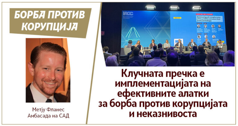 На Меѓународната конференција за борба против корупција во Вилнус, Литванија, слушнавме меѓународни искуства и можеме да заклучиме дека РСМ има легислативна и институционална рамка која овозможува ефикасна борба против корупцијата. Единствено недостасува соодветна имплементација на законите.
