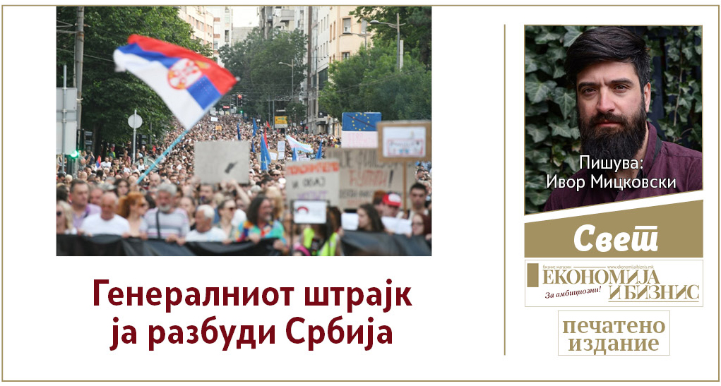 Студентите во овој момент се српската опозиција, синдикат, граѓански револт, движење против корупцијата и трагедиите како 15-те жртви од падот на натстрешницата на железничката станица во Нови Сад на 1 ноември минатата година. Затоа и сметам дека Генералниот штрајк беше успешен, не во смисла на автентичен генерален штрајк кој тотално парализира една држава колку од аспект на масовноста, на солидарноста и на нивото на предупредување кое му беше упатено на режимот. Успешен беше особено поради фактот што се оствари во услови и во земја без традиција на силно синдикално движење и во моментов без структурирана опозиција. Што и да се случува во иднина, дали ќе се создаде некоја нова и кредибилна опозиција која би можела да настапи на избори во променети услови и без наместен изборен процес, студентското движење сè повеќе наликува на сенароден бунт способен да го растресе режимот од неговите сигурности и од системот на сила кој го спроведува.
