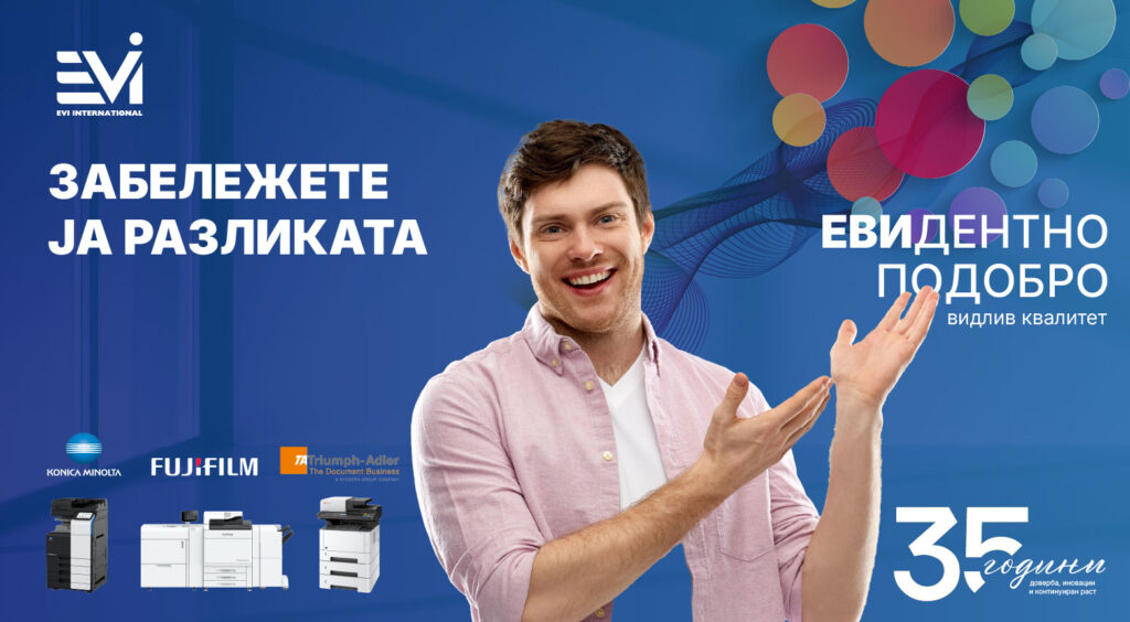 Во современото деловно опкружување, каде секоја минута е важна, компаниите имаат потреба од технологија која не само што функционира, туку активно го забрзува работниот процес. Токму затоа, ЕВИ Интернатионал Траде, со повеќе од 35 години искуство на пазарот, нуди мултифункционални решенија за печатење што се прилагодуваат на динамиката на бизнисите кои не застануваат. Притоа, добивате стабилност во работата преку брза и респонсивна сервисна поддршка и внимание за секој клиент.