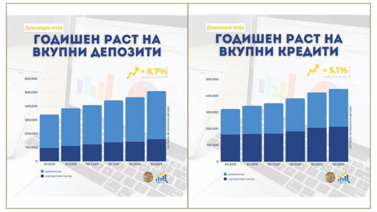 Годишен раст од 8,7% на вкупните депозити и од 5,1% на вкупната кредитна поддршка