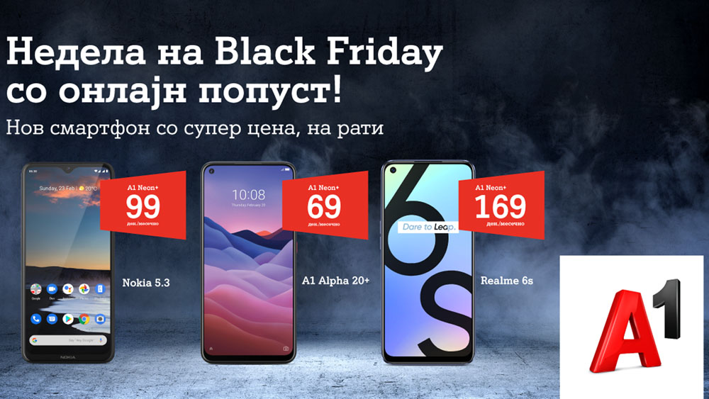 А1 Македонија од денеска започна со Black Friday и распродажба на телефони преку онлајнканалите за продажба, A1oнлајн продавницата и A1 Live Shop, а на корисниците им нуди смартфони и уреди со онлајн попуст и купување на рати.