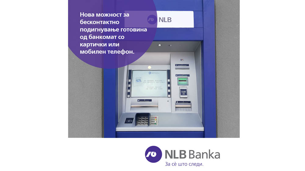 НЛБ Банка воведе можност за бесконтактно користење на услугите на своите банкомати. Оваа иновативна придобивка е достапна за сите корисници на бесконтактни платежни картички, како и за сите корисници кои имаат апликација за мобилен паричник. Во моментов услугата за бесконтактни трансакции е достапна на 80 НЛБ банкомати низ земајва.