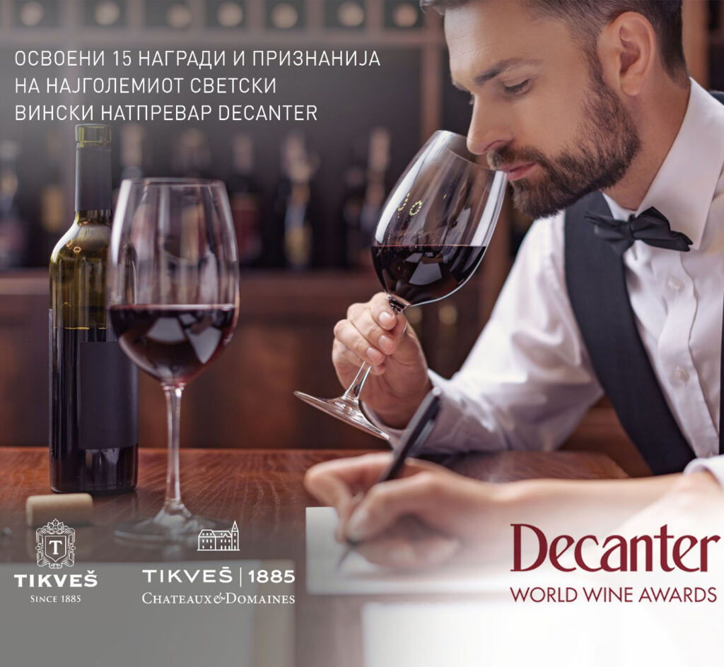 Вината на „Тиквеш“ и ‘тероар’ вината од новата бренд-платформа „Tikves Chateaux & Domaines“ забележаа одличен успех на еден од најголемите и највлијателни светски вински натпревари – „Decanter“, кој по 16-ти пат се одржува во Лондон. Врвното црвено ‘тероар’ вино „Барово“ од бербата 2016-та и оваа година освои златен медал во конкуренција од над 16.500 вина од 57 земји, што претставува факт кој сам по себе најдобро ја отсликува големината на овој успех.