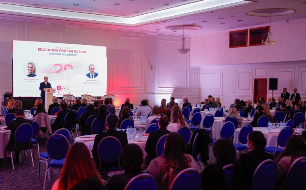 Универзитетите мора пред сѐ да ги постават основите за континуирано учење и развој за своите студенти, а потоа и да ги научат како да размислуваат критички, да соработуваат и да иновираат во свет кој што постојано се менува. Во таа насока, УАКС ќе продолжи да инвестира во современи методи на учење, дигитална трансформација, иновации и градење вештини корисни во бизнисот и јавниот сектор и општеството во целина. Остануваме отворени и подготвени за соработка со институциите и партнерите, затоа што длабоко веруваме дека токму образовани и подготвени млади луѓе се темелот на развојот на нашата земја.“ – потенцираше ректорката Крлиу. Свое свечено обраќање имаше и Претседателот на Собранието на Република Северна Македонија, г. Африм Гаши, кој ја истакна значајната улога на високото образование во националниот развој, општествената кохезија и подготовката на младите за современите глобални предизвици: „Високото образование е најважниот капитал на едно општество и држава, бидејќи сите области од јавниот живот зависат од неговиот квалитет. Образованието на утрешнината нè соочува со нови предизвици на дигитализација, но и креативност, како и соработка што бара и очекува одговорно лидерство. Универзитетите на нашето време мора да подготват граѓани способни да ги водат промените, а не само да ги следат. Во оваа мисија, академската заедница е фундаментален фактор за економски развој, иновации и европска интеграција. Универзитетот е срцето што го храни знаењето во телото на општеството – каде што се раѓаат идеи што го овозможуваат заедничкиот напредок.”, истакна претседателот на Собранието Гаши. Осврнувајќи се на достигнувањата на УАКС како лидер во високото образование во земјата, претседателот на Собранието Гаши посочи: „Изминатите две децении, Универзитетот Американ Колеџ Скопје беше пионер во усвојувањето и употребата на меѓународните стандарди за квалитет во високото образование, градејќи добри образовни мостови помеѓу американскиот и европскиот пристап кон образованието. Ова овозможи напредна филозофија на учење што не се заснова на квантитет, туку на квалитет, на критичко размислување, креативност и интегритет. УАКС останува пример за визија, партнерство и вредности што треба да се негуваат и во следните 20 години.” – потенцираше претседателот на Собранието Гаши. Едукативниот форум ќе се фокусира на дискусии за тоа како образованието ќе изгледа во наредните децении и како тоа може да се трансформра и адаптира на технолошките и општествени промени, со фокус дигиталната писменост, критичкото размислување, креативноста и флексибилноста. Воедно, ќе се дискутира и за улогата на вештачката интелигенција, како и за знаењата и вештините кои ќе бидат најпотребни за младите во иднина, и секако, како академијата, бизнисот и институциите можат заеднички да поттикнат развој во општеството. Со Форумот, УАКС повторно ја нагласува својата стратешка насока: вложување во иновации, дигитални компетенции, негување критичка мисла, интернационализација и партнерства кои ќе ја зајакнат улогата на УАКС како место каде што се создаваат знаења, политики и практики што го менуваат општеството. УАКС продолжува да ја гради својата позиција како јадро каде што се поврзуваат академијата, бизнисот и институциите – создавајќи образование рел