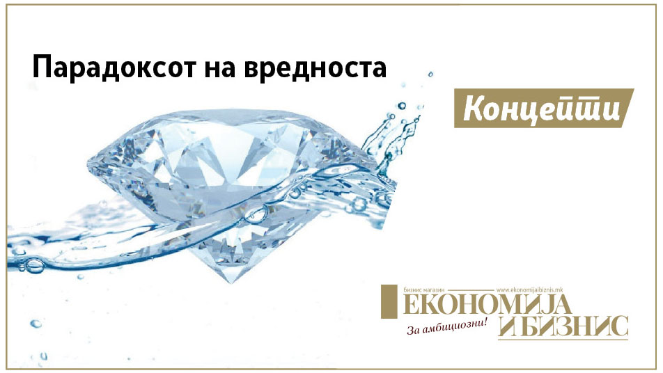 Живееме во време кога економските параметри излегуваат надвор од секоја воспоставена граница и борбата за предвидување на утрешните цени на стоките и услугите е сизифов предизвик. Борбата со се поголемата инфлација и неекономски создадените фактори кои влијаат на понудата и побарувачката дополнително ја влошуваат ситуацијата со одредувањето на цените. Во еден таков контекст добро е да се осврнеме на терминот “парадоксот на вредност”. Имено, станува збор за теорија преку која на споредбен начин се определува вредноста на две различни добра. Во економската литература оваа теорија е поткрепена со цената на водата и дијамантот. Објаснувањето е следно: зошто водата која е толку неопходна за живот има толку ниска цена, а од друга страна дијамантот кој е малку корисен за луѓето има релативно висока пазарна цена?