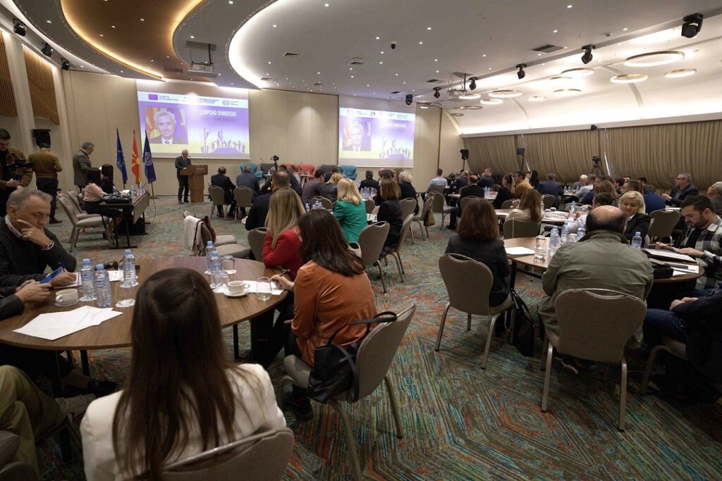 „Безбедноста и здравјето при работа не се само технички или административни категории. Тие се основни човекови права и показател за тоа колку едно општество навистина се грижи за својот човек. Тие ја одразуваат зрелоста на една држава, не само во економска, туку и во морална и институционална смисла. Сосема отворено, мораме да признаеме: состојбата со безбедноста и здравјето при работа во Македонија сè уште не е на нивото на кое тежнееме. Податоците покажуваат дека бројот на повреди на работа и понатаму е висок, а системите за управување со ризици не се доволно распространети, особено во малите и средни претпријатија. Владата останува целосно посветена на изградба на систем кој ќе гарантира сигурни, здрави и продуктивни работни места за сите граѓани. Со поддршка на меѓународните партнери, со социјалниот дијалог и со знаењето на нашите експерти и академици, уверен сум дека ќе изградиме одржлива и современа култура на превенција – достојна за земја што чекори кон Европската Унија“, истакна заменик претседателот на Владата за политички систем, Љупчо Димовски, во своето обраќање на официјална промоција на Проектот.