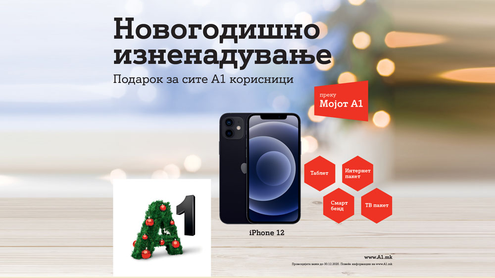 Својот новогодишен подарок-изненадување во форма на интернет пакет, ТВ пакет, таблет, iPhone 12 како исмарт бенд , корисниците ќе го откријат преку најновата верзија на апликацијата Мојот А1.