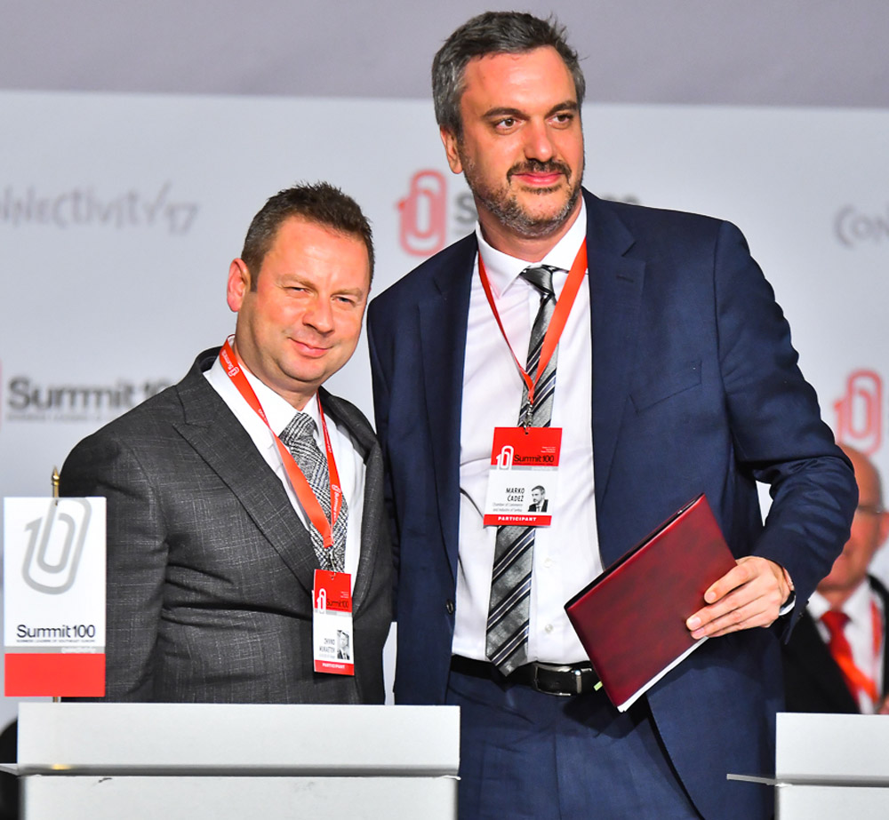 САМИТ100 на Бизнис лидери од ЈИЕ претставува уникатна бизнис иницијатива која на едно место ги собира најеминентните бизнис лидери од Словенија, Хрватска, Србија, Босна и Херцеговина, Црна Гора, Македонија, Косово и Албанија.
