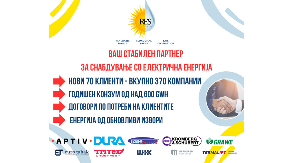 Само во овие три месеци, РЕС потпиша договори со нови 70 компании и сега снабдува преку 370 стопански субјекти, кои се економскиот двигател на македонското општество и кои преку РЕС ќе трошат околу 600 GWh електрична енергија годишно.