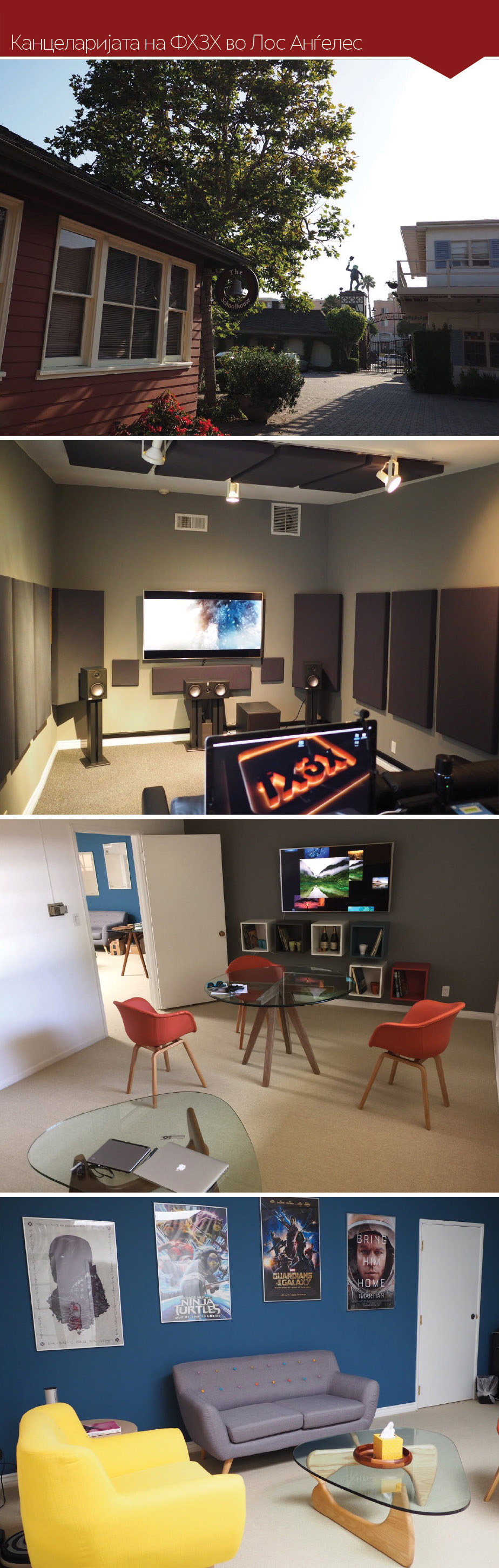 Интересно е дека канцеларијата и студиото се во старото студио на Чарли Чаплин во Холивуд. Веќе низ тој капацитет ни поминаа неколку холивудски блокбастери, но и две анимирани ТВ-серии, од кои за серијата Splash and Bubbles целиот колор грејдинг се правеше далечински во студиото во Скопје, во директна соработка со режисерите на серијата кои ни беа во канцеларијата во Лос Анѓелес и на тој начин ги средувавме боите за конечен мастеринг на епизодите на серијата. Но, како што првично напомнав, во прв ред канцеларијата служи за зголемување на нашето присуство на американскиот пазар како со познатите филмски студија од Холивуд и од Лос Анѓелес, така и со новите како Нетфликс и Амазон и ред други слични медиуми. Преку канцеларијата нашето присуство значително се зголеми.