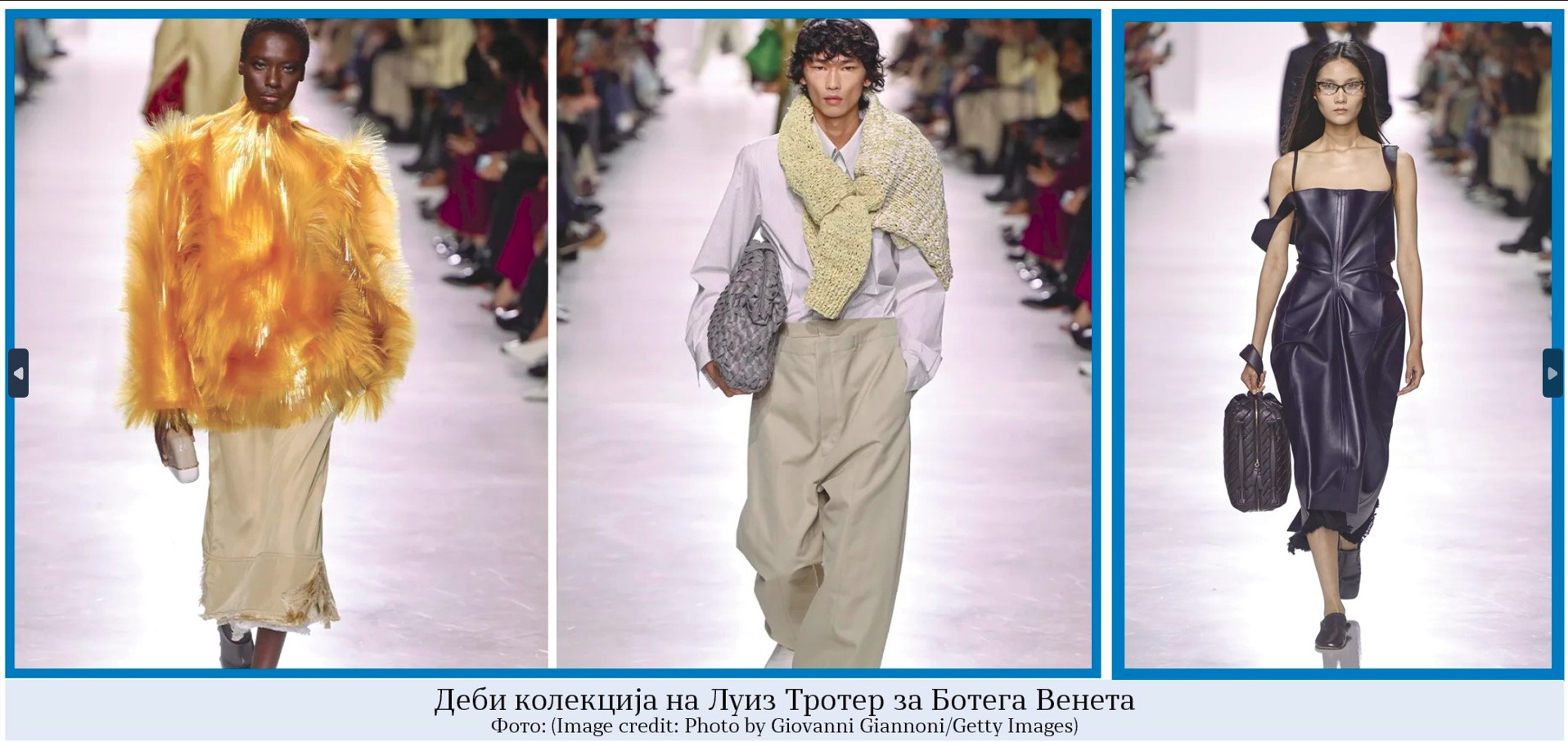 Заедно со Рејчел Скот која го презеде кормилото во Проенца Шулер, Луиз Тротер е една од ретките жени кои беа назначени во 2025 година при рекордната промена на дизајнерски лидери во 15-тина модни куќи. Таа претстави голема деби колекција минатата сезона, за италијанскиот бренд од групацијата Керинг, Ботега Венета. Меѓу жените дизајнери беше и Грејс Велс Бонер, како замена на Вероник Нишанијан, која на 71-годишна возраст се повлече од дизајнирање на машката колекција за Хермес по 37 години на позиција на уметнички директор на секторот.