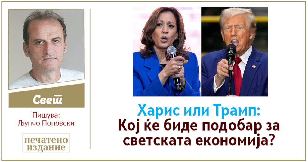 Тоа ќе биде целосно неизвесна трка. Многу работи се пишуваат за тоа каков одраз ќе има на американската политика и општество (а и во светот) изборот на едниот или на другиот за станар на Белата куќа. Генерално малку се пишува за она каков ќе биде економскиот светоглед доколку поранешниот претседател Трамп победи на изборите, а што ќе понуди потпретседателот Харис и какви ќе бидат последиците за глобалната економија.
