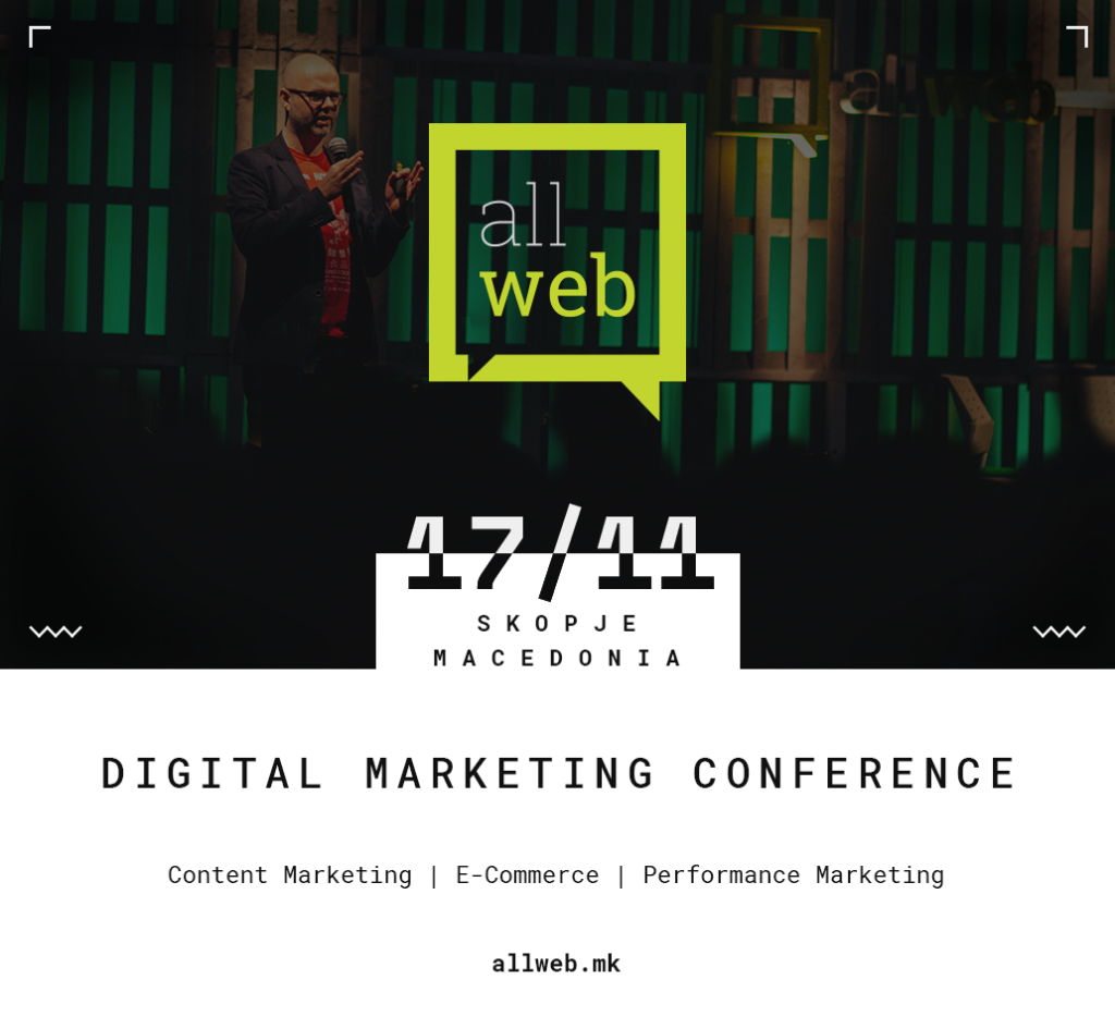 Шестото по ред издание на единствената конференција која во фокусот ги има маркетингот и дигиталните комуникации ќе се одржи на 17 ноември во Скопје. AllWeb, како и секоја година претходно, ќе биде местото каде ќе се разговара за иднината и предизвиците во дигиталниот маркетинг, креирањето на содржина и е-трговија.