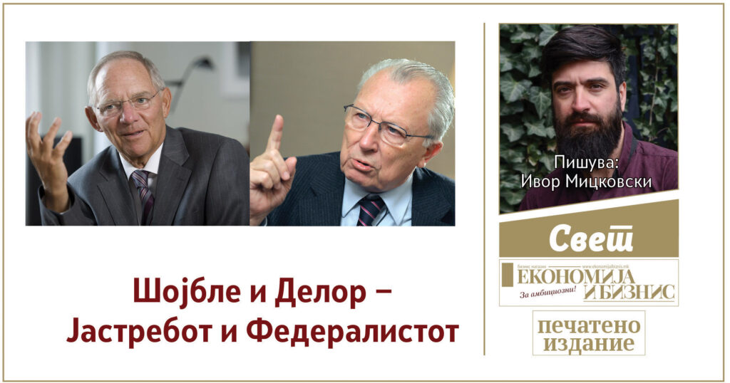 Станува збор за јастребот и за федералистот на Европа, односно Волфганг Шојбле и Жак Делор. Од кој агол и да се гледа, во овие последни денови ЕУ и Европа изгубија две носечки личности на својата историја и на сопствената еволуција.