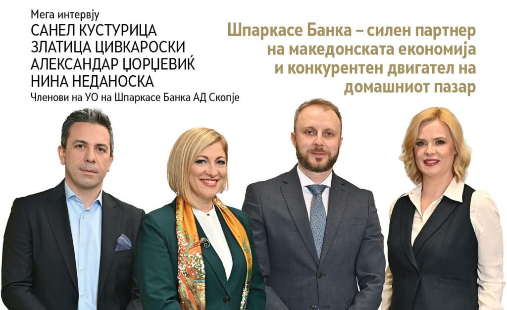 Шпаркасе Банка го прошири менаџерскиот тим. Покрај Санел Кустурица како претседател на УО и Нина Неданоска како заменик-претседател на УО, Златица Цивкароски и Александар Џорџевиќ се новото засилување на Управниот одбор на Шпаркасе. Банката ја потврди својата позиција на пазарот, испишувајќи историски најуспешна година, со рекордно висок резултат кој гарантира сигурност, стабилност и иднина за сите свои клиенти и за вработените. Во ексклузивно интервју за „Економија и бизнис“, членовите на Управниот одбор зборуваат за остварените резултати, за довербата од клиентите и за идните планови кои се дел од 5-годишната стратегија на Шпаркасе Банка.