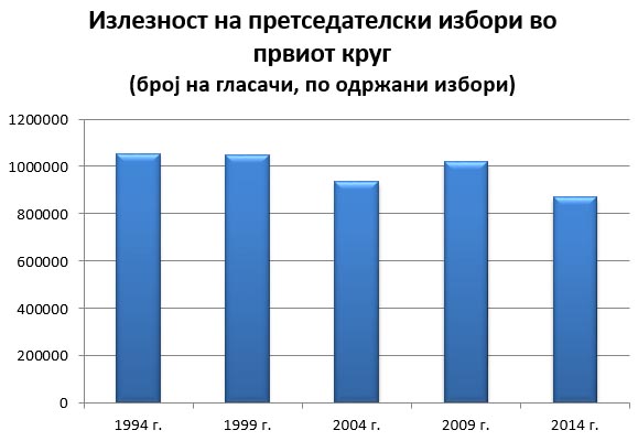 Графиконите ја прикажуваат излезноста, поодделно на првиот и вториот круг на досега одржаните претседателски избори. Притоа кај вториот круг се земени предвид конечните резултати, по евентуално одржано прегласување и сл. Податоците покажуваат дека просечната излезност во првиот круг е 985 726 гласачи, а во вториот 938 726 гласачи, што значи дека во просек излезноста на […]