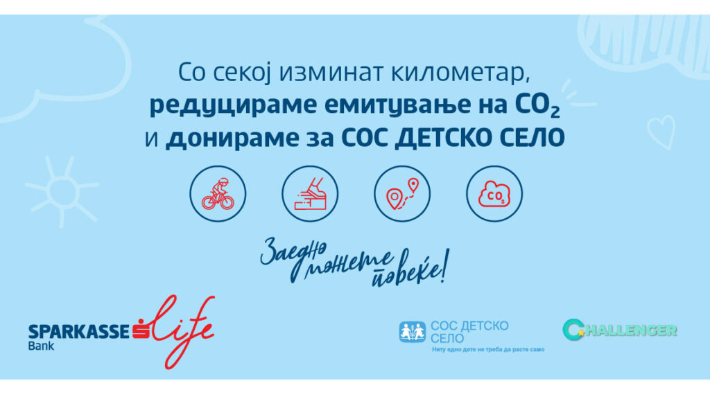 Вработените во Шпаркасе Банка во период од 05.10.2021-31.11.2021 со секој ЕКО километар поминат во пешачење, возење велосипед, планинарење, ќе овозможат да се собере поставената цел за донација кон „СОС Детско село“ во износ од 300.000 денари. Преку повикот за остварување на заеднички импакт од сите вработени, Шпаркасе Банка не само што ќе ја реализира донацијата […]