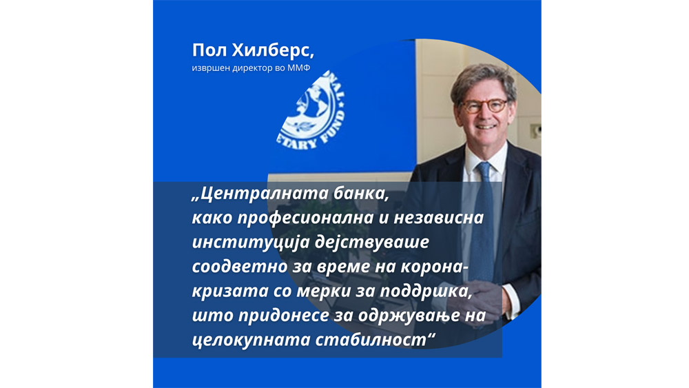 Извршниот директор во ММФ Хилберс: Централната банка дејствуваше соодветно за време на кризата