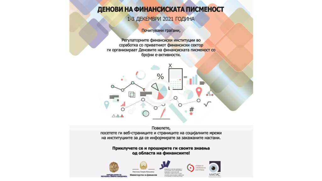 Следната недела, од 1 до 3 декември, ќе се одржи петтото издание на Деновите на финансиската писменост, коишто ги организираат финансиските регулаторни институции во соработка со приватните финансиски компании. Конкретно, организаторите се Народната банка, Министерството за финансии, Комисијата за хартии од вредност, Агенцијата за супервизија на капитално пензиско осигурување ‒ МАПАС и Агенцијата за супервизија […]