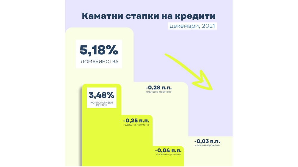 НБ: Во декември 2021 продолжи трендот на намалување на каматните стапки