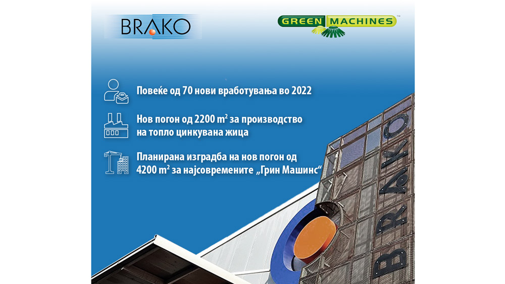 Новите проекти и инвестиции во „Брако“ ја продолжуваат тенденцијата на отворање нови работни места и тоа во услови на дестабилизирани економски текови во светски рамки. Од почетокот на годинава до јули, „Брако“ вработи 74 нови лица со што во моментов компанијата брои над 600 вработени. Додека вкупниот број на вработени во Групацијата „Фероинвест“, од која […]