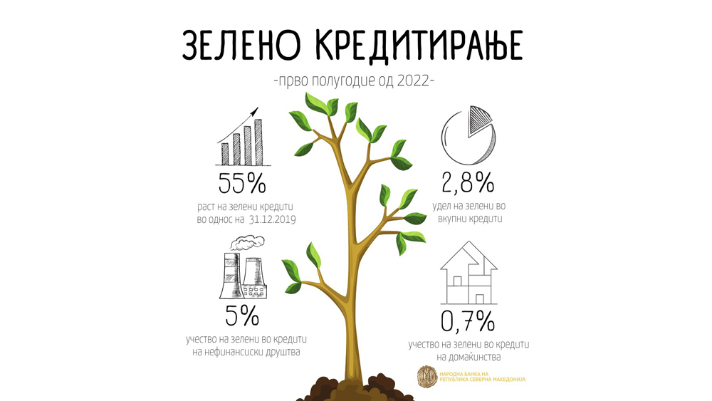 Раст на зелените кредити за 55% во изминатите две и пол години, но сè уште е ниска застапеноста во вкупните кредити