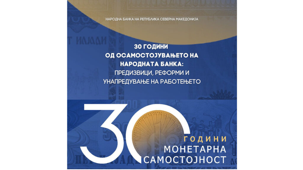 Во рамките на одбележувањето на 30-годишниот јубилеј од воведувањето на нашата национална валута – денарот и воспоставувањето на институционалната рамка на монетарниот систем, односно функционирањето на нашата самостојна централна банка, Народната банка ја објави публикацијата „30 години од осамостојувањето на Народната банка: предизвици, реформи и унапредување на работењето“. Публикацијата дава осврт на работењето и постигнувањата […]