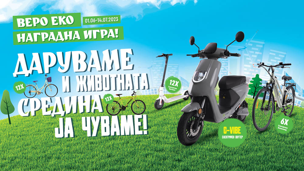 Во согласност со корпоративната политика на Веро за поттикнување активности кои придонесуваат за поздрава и почиста животна средина, денеска (1 јуни) почнува голема летна наградна игра „Даруваме и животната средина ја чуваме“ со богат фонд на еко награди. Главната награда која ќе заврши во рацете на најсреќниот потрошувач е електричен мотор C-VIBE. Наградната игра ќе […]