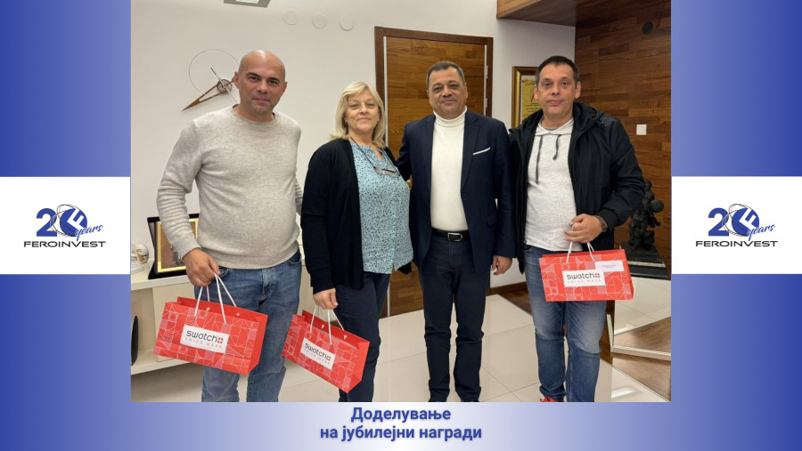 Компанијата ФЕРОИНВЕСТ и фабриката БРАКО одбележуваат 20 години од своето постоење. По тој повод, беа доделени јубилејни часовници на вработените кои се дел од компанијата од нејзиното основања, како и на вработени кои се придружиле на тимот во следните години и имаат значајни постигнувања за фирмата. Менаџментот лично ги додели пригодните подароци и им изрази […]