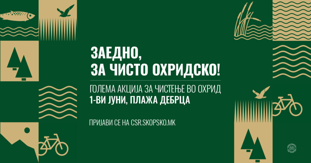 Заедно, за #НашатаГордост, Охридското Езеро! СКОПСКО ве повикува да се приклучите на големата еко-акција за чистење на Охридското Езеро, нашето непроценливо природно богатство кое заслужува целосна заштита и грижа. Оваа акција ќе се одржи на 1-ви јуни на плажата Дебрца (стар пат Охрид-Струга, во близина на реката Сатеска), и претставува одлична можност за сите граѓани, […]