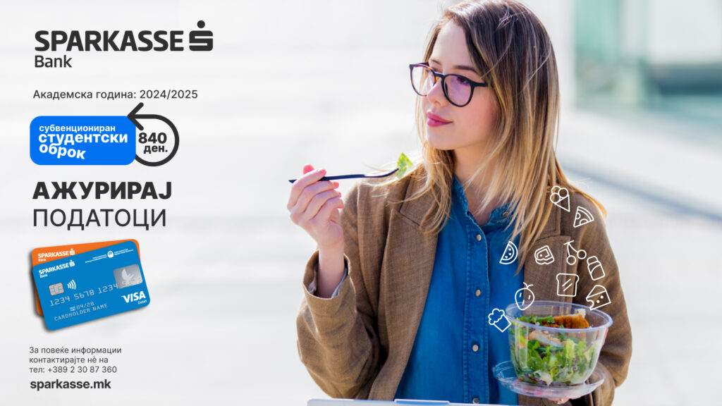 Шпаркасе Банка: Известување за добивање субвенциониран студентски оброк за сите нови студенти