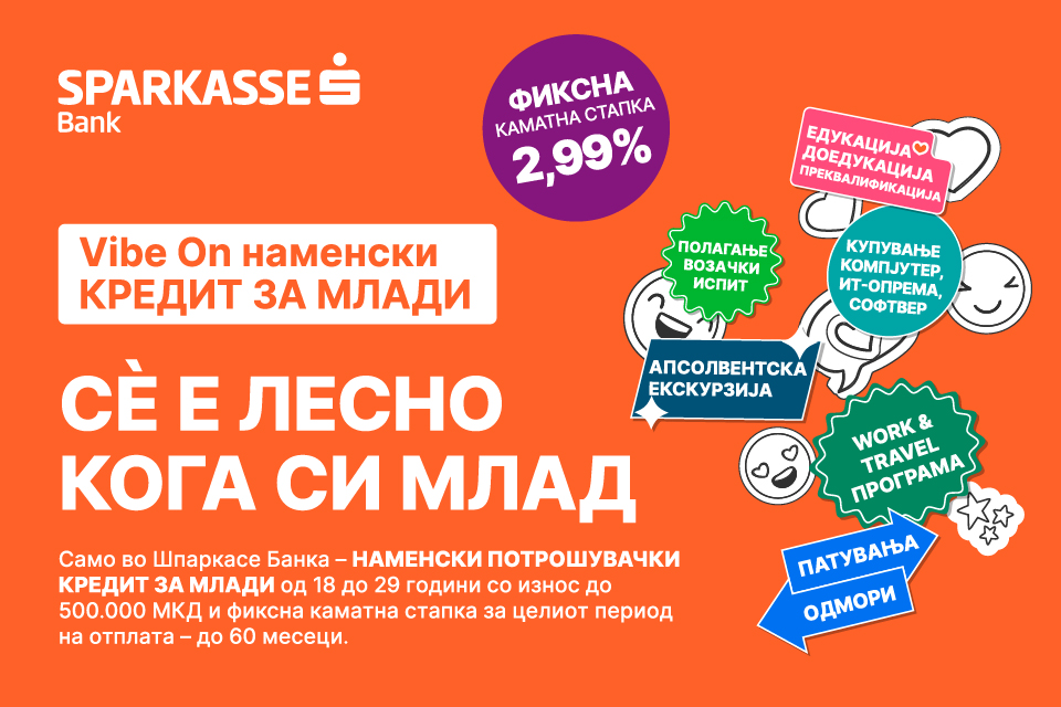 Шпаркасе Банка со задоволство го објавува лансирањето на својот нов потрошувачки кредит дизајниран специјално за млади луѓе на возраст од 18 до 29 години. Овој иновативен кредитен производ ја нагласува посветеноста на Банката да инвестира во иднината на следната генерација, обезбедувајќи неспоредлива финансиска поддршка за да им помогне на младите да ги постигнат своите аспирации […]