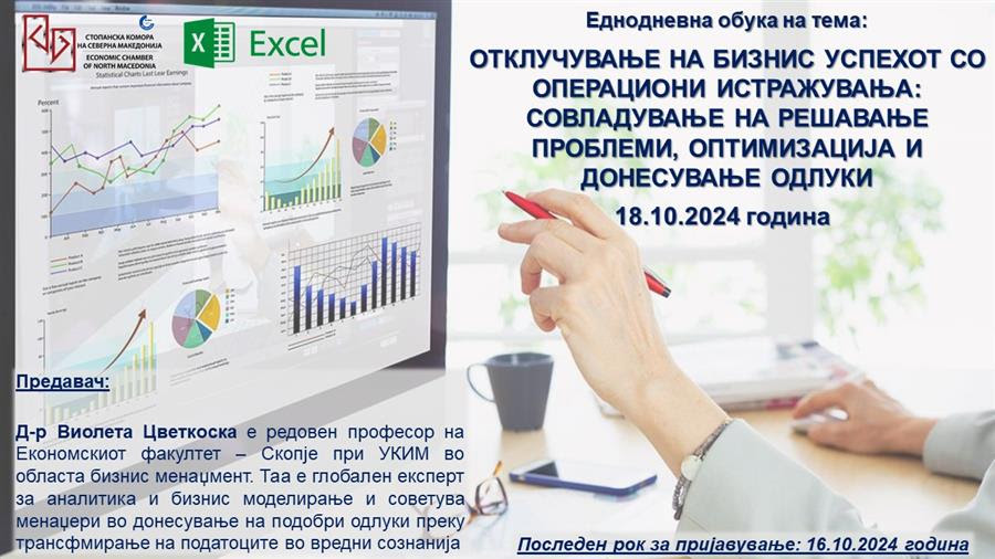 ОБУКА: ОТКЛУЧУВАЊЕ НА БИЗНИС УСПЕХОТ СО ОПЕРАЦИОНИ ИСТРАЖУВАЊА: СОВЛАДУВАЊЕ НА РЕШАВАЊЕ ПРОБЛЕМИ, ОПТИМИЗАЦИЈА И ДОНЕСУВАЊЕ ОДЛУКИ
