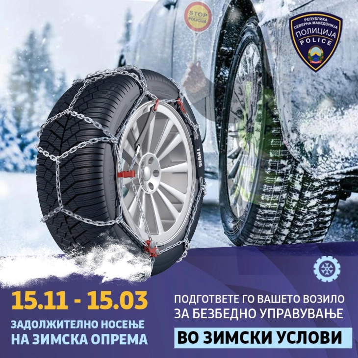 Министерството за внатрешни работи ги информира граѓаните дека од 15 ноември до 15 март, согласно одребите од „Законот за безбедност на сообраќајот на патиштата“, возилата кои учествуваат во јавен сообраќај на патиштата задолжително треба да поседуваат пропишана зимска опрема. Согласно одребите од Правилникот за задолжителна опрема на возилата, за безбедно учество во сообраќајот на патиштата. […]