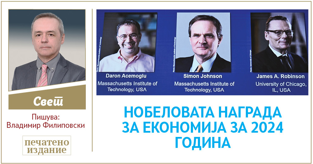 НОБЕЛОВАТА НАГРАДА ЗА ЕКОНОМИЈА ЗА 2024 ГОДИНА: ВЛИЈАНИЕТО НА КВАЛИТЕТОТ НА ЕКОНОМСКИТЕ И ПОЛИТИЧКИТЕ ИНСТИТУЦИИ ВРЗ ЕКОНОМСКИОТ РАЗВОЈ