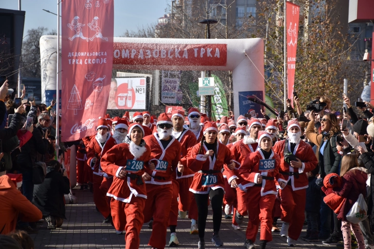 На Плоштад Македонија во Скопје денеска се одржa 10-тата Coca-Cola Дедомразовска трка. Стотици учесници облечени како Дедо Мраз трчаа два километри низ градот. Како што соопштуваат организаторите „Прв до врв“,