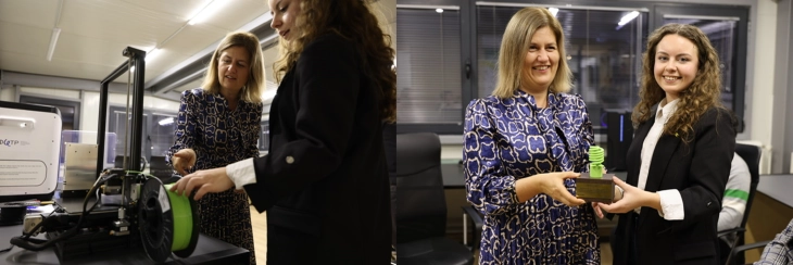МЛАДИТЕ ИНОВАТОРИ ИСПЕЧАТИЈА СТАТУЕТКА НА 3Д ПРИНТЕР ЗА МИНИСТЕРКАТА БОЖИНОВСКА