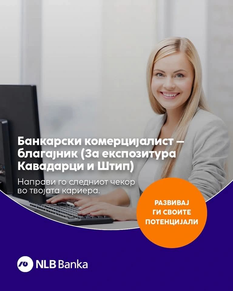 НЛБ Банка е во потрага по нови колеги кои ќе се придружат во тимот на успешни професионалци👉Отворени позиции:📌Банкарски комерцијалисти- благајници за експозитурите во Кавадарци и ШтипДознај повеќе и аплицирај на 👇https://shorturl.at/Jj93p