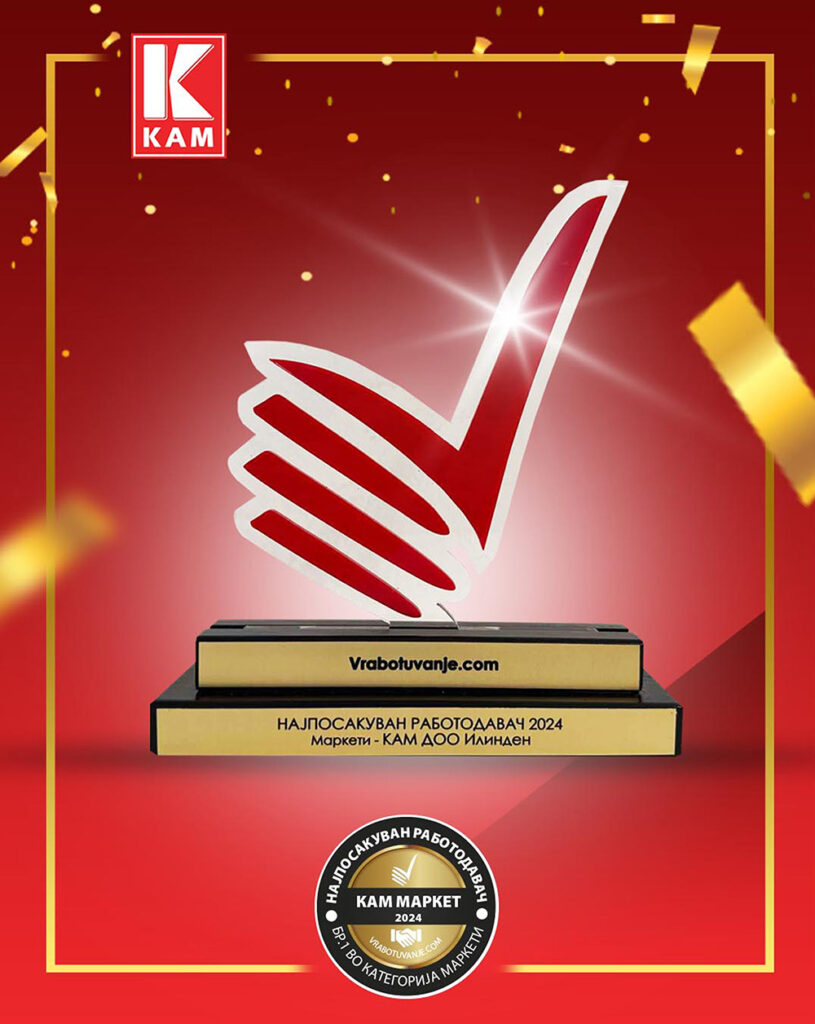 Како резултат на постојаните напори за подобрување на условите за своите вработени, „КАМ“ повторно ја доби наградата за најпосакуван работодавач во категоријата маркети во Македонија која ја доделува vrabotuvanje.com.mk Манифестацијата замислена како „Оскари“ за работодавачите „Работодавач на годината“, се одржа вчера во хотелот „Лимак“ во Скопје, каде јавноста ги одбра најпосакуваните компании за вработување во […]