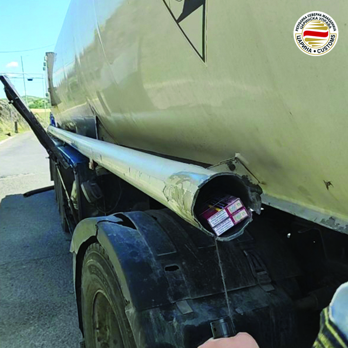 Царинска управа: Запленети 30 илјади евра и 55 штеки цигари скриени во цистерни Царински службеници на граничен премин Богородица во една цистерна пронајдоа дури 49 штеки цигари и 300 грама