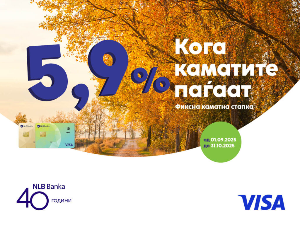Вашите трошоци под контрола, со помала камата и поголема сигурност! НЛБ Банка ја намалува каматата – вие ги намалувате трошоците! Од почетокот на месец септември до 31 октомври 2025 година, сите корисници на НЛБ Visa кредитните картички – Visa Classic и Visa Gold – имаат можност да ги реализираат своите планови и секојдневни потреби со […]