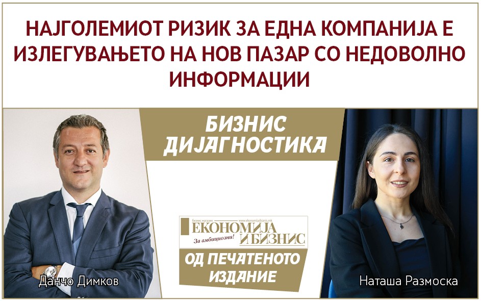 БИЗНИС ДИЈАГНОСТИКА | Данчо Димков и Наташа Размоска од БизБи солушнс: НАЈГОЛЕМИОТ РИЗИК ЗА ЕДНА КОМПАНИЈА Е ИЗЛЕГУВАЊЕТО НА НОВ ПАЗАР СО НЕДОВОЛНО ИНФОРМАЦИИ