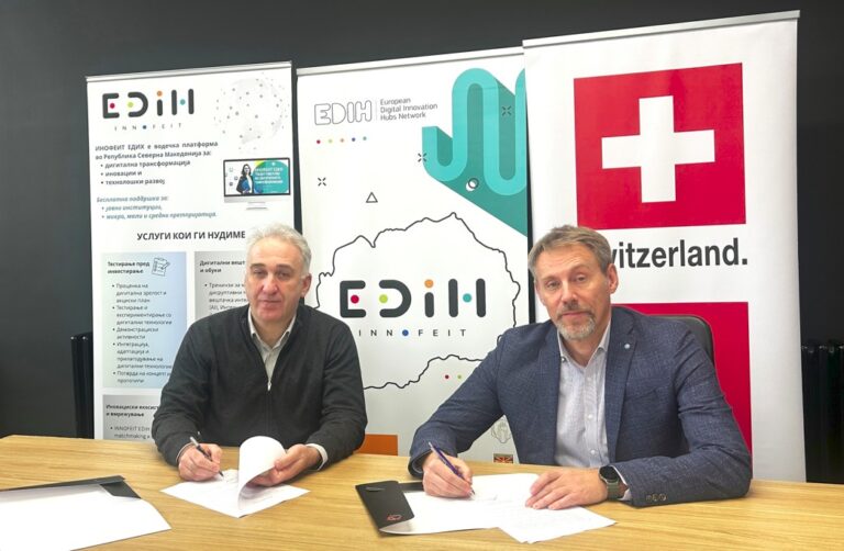 Центарот за трансфер на технологии и иновации ИНОФЕИТ, координатор на Европскиот дигитален иновациски хаб ИНОФЕИТ ЕДИХ и Швајцарската Програма за зголемување на пазарната вработливост – ИМЕ, потпишаа Меморандум за соработка