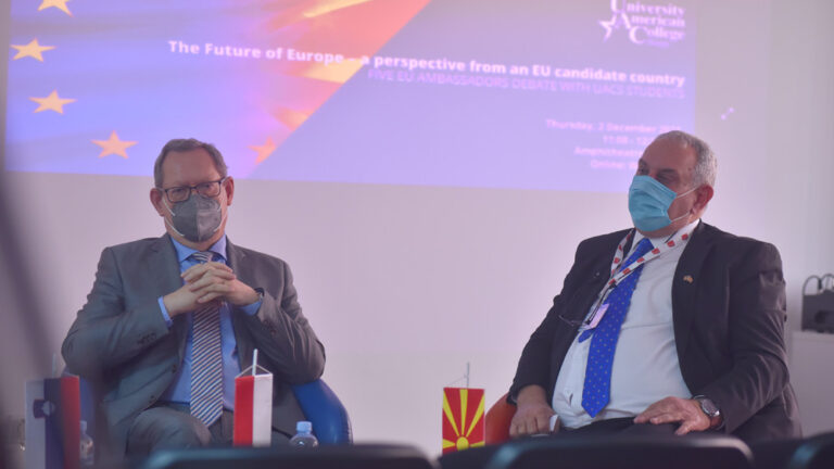 Според полскиот амбасадор, ако ЕУ нема силно присуство, ќе се појават други играчи што ќе го дестабилизират регионот Дел од излагањето на панел-дискусија што се одржа на Универзитет Американ Колеџ