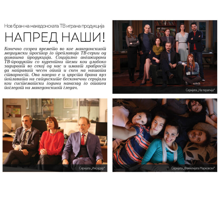 Конечно созреа времето во кое македонскиот медиумски простор го преплавија ТВ-серии од домашна продукција. Социјално ангажирани ТВ-продукти со курентни теми кои длабоко задираат во секој од нас и имаат храброст